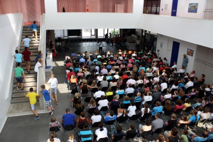 Nach einem selbsteinstudierten Tanz von Mädchen aus der Klasse 7c wurden die schon ungeduldigen Neulinge nicht weiter auf die Folter gespannt. Die fünf Klassenlehrerinnen Andrea Bechthold (5a), Lena Zeeb (5b), Katharina Peter (5c), Stefanie Sowa (5d) und Christiane Günther (5e) nahmen ihre Schützlinge in Empfang und verschwanden mit ihnen in den Klassenzimmern.