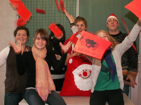 Alle Schülerinnen und Schüler, die andern als “ Dankeschön “ für hilfreiche Momente etwas Gutes tun wollten, konnten sich gegen einen geringen Spendenbeitrag “ Nikolaus for you ” - Karten kaufen und damit an andere Schülerinnen und Schüler ein kleines Überraschungsgeschenk schicken lassen.