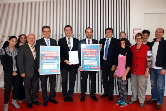 Eine weitere schriftliche Kooperationsvereinbarung innerhalb des Projekts „Wirtschaft macht Schule“ gab es am Dienstag an der Carl-Netter-Realschule in Bühl. Nach Sparkasse und DOW mit der Industrie- und Handelskammer Karlsruhe waren an diesem Tag KFZ-Betriebe und Handwerkskammer zu Gast.