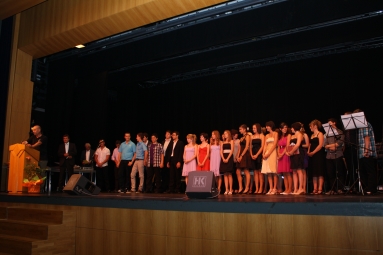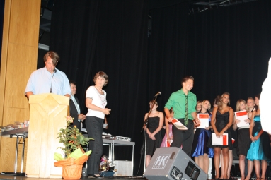 „Irgendwas bleibt” hieß das erste Lied der neuformierten CNR-Schulband unter der Leitung von Bernfried Adler. Rektor Erhard Wein bezog diesen Titel zum einen auf die Erinnerungen an die vergangenen sechs Schuljahre als auch auf die Erinnerungen an einen Rekordjahrgang 2009/2010: Fünf Klassen mit je 33 Schülern starteten ihre Realschulzeit noch in der alten Realschule am Stadtgarten, davon schlossen jetzt alle verbliebenen 152 Zehntklässler im neuen Gebäude am Platz Vilafranca ihre Prüfungen überaus erfolgreich ab: 55 erreichten einen Notendurchschnitt zwischen 1,0 und 1,9 und erhielten einen Preis, weitere 33 Schüler ein Lob (Durchschnitt von 2,0 bis 2,2). Insgesamt wurden 56,6 % des Abschlussjahrgangs ausgezeichnet, der Gesamtdurchschnitt ist mit 2,2 ebenfalls ein Rekord in der Geschichte der CNR.