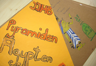 Die Spezialistengruppe 1 beschäftigte sich mit dem Thema „Künstlerbuch“ und gestaltete dazu ein Plakat. Außerdem recherchierte sie über die Künstlergruppe „à3“ und erstellte ein Info-Blatt. Die bekannte Künstlergruppe „Der Blaue Reiter“ war das Thema der Spezialistengruppe 2. Sie erkundigte sich über die Künstler und den Almanach der Gruppe und gestaltete aus den Informationen ein Leporello.