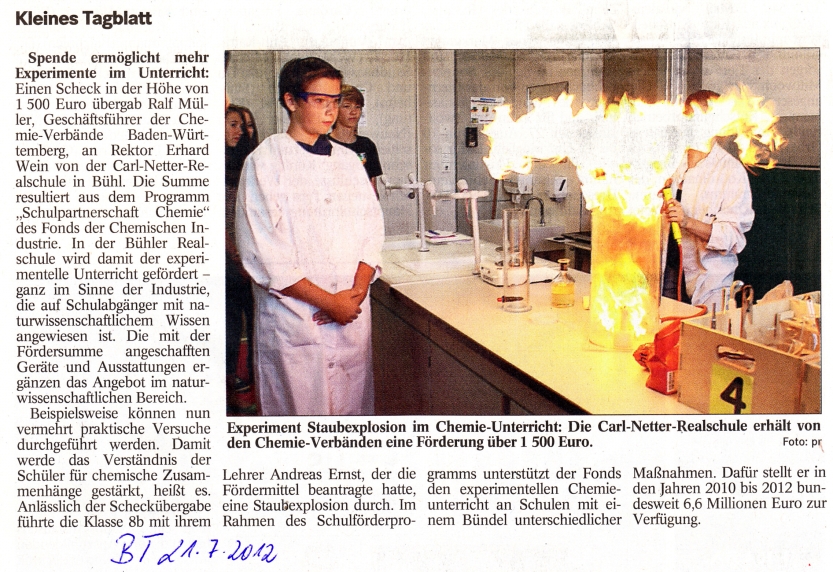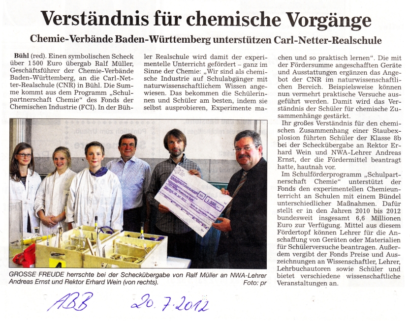 Spende v. Chemie-Verbänden Bad./Württ.