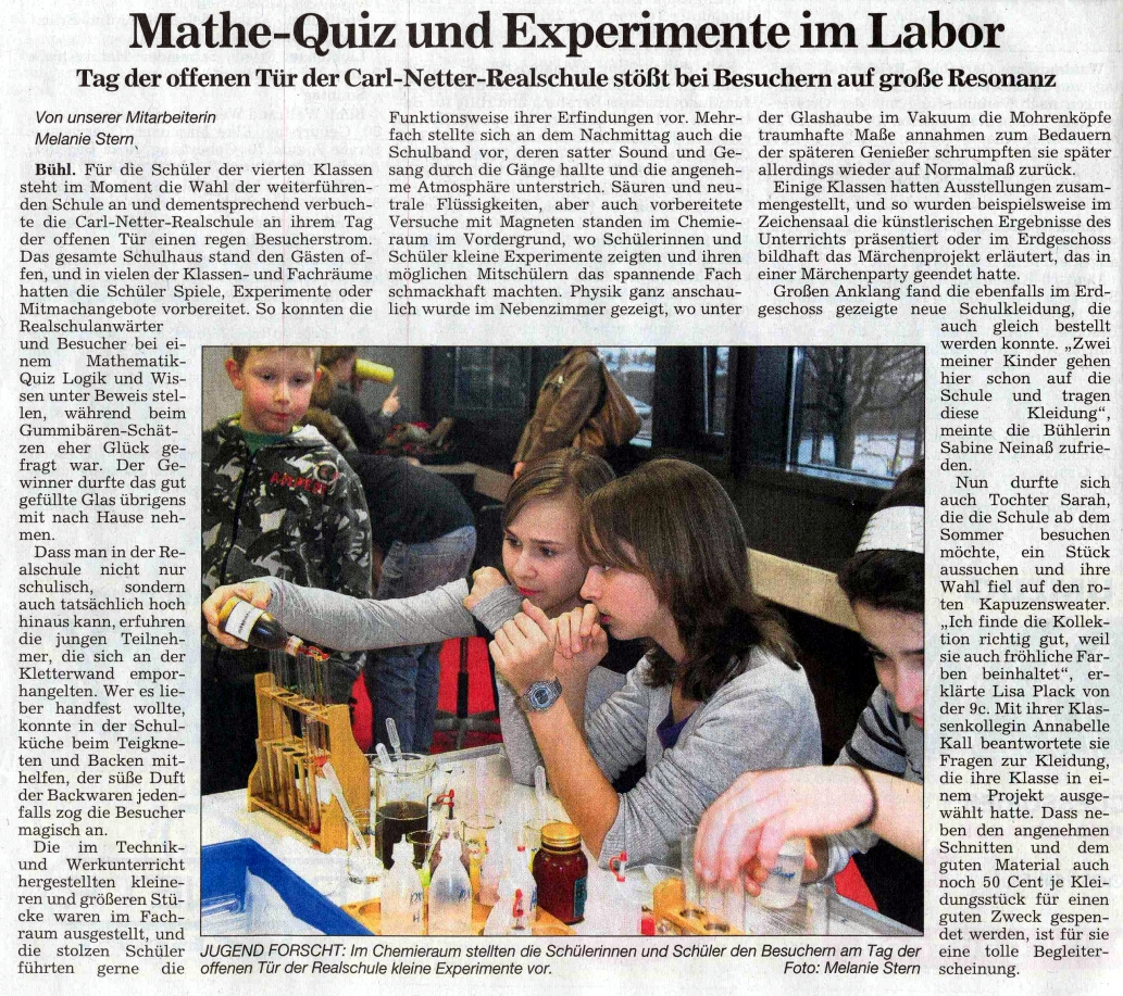 Am 5. März 2009 fand in den Räumlichkeiten der Carl - Netter - Realschule Bühl ein Tag der offenen Tür statt.